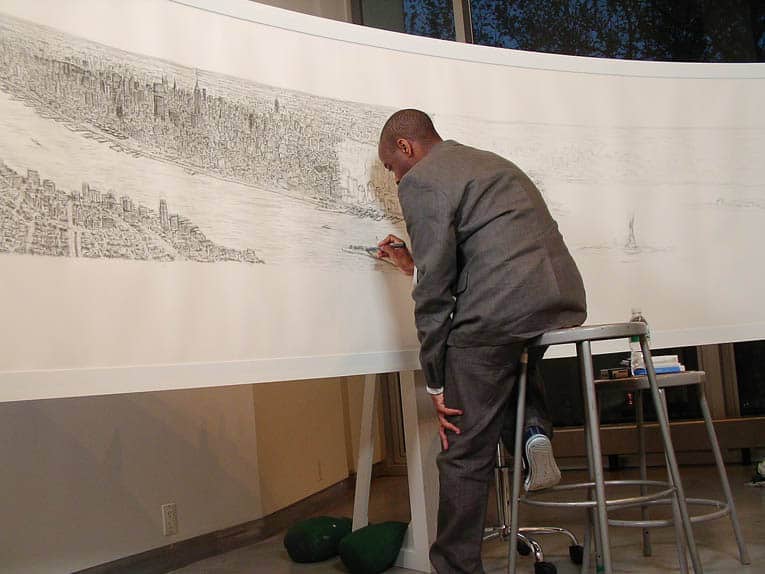 Anyone visiting the Empire State Building on 34th Street in midtown Manhattan is immediately drawn to its immensity. The Art Deco landmark became the iconic symbol of New York City since its completion in 1931. It is indeed a captivating site from near and far, from within and without. Over the years, numerous displays would be exhibited as part of its gallery on the second and 80th floors, paying homage to its timeless, structural beauty and the engineering success represented in its architectural design. Among the museum displays is a copy of a panoramic, hand-sketched, achromatic drawing of the New York City skyline, including the renowned 34th Street edifice. One of the things that makes the drawing a remarkable art piece–besides the incredible detail of the city-scape structures–is that it is an image that was committed to memory after a 20-minute helicopter tour of the Big Apple.