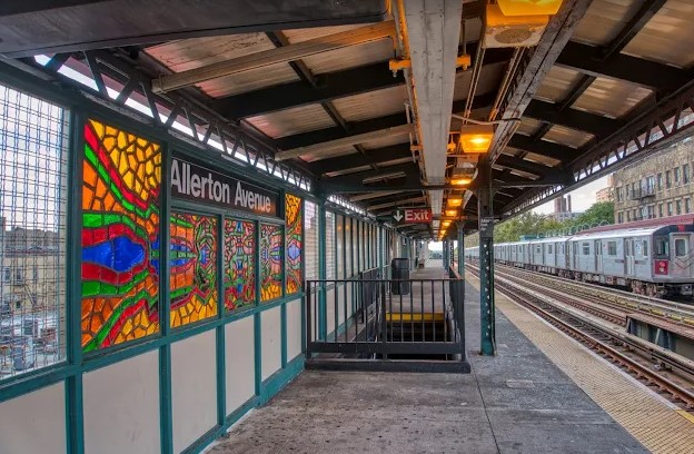 The more than 100-year-old Interborough Rapid Transit (or IRT) station (opened in 1917) on Allerton Avenue, at the intersection of White Plains Road, provides residents of the East Bronx easy access to Manhattan via the Seventh Avenue Express subway line. It also provides individuals outside this northern borough of the city access to landmark cultural destinations, including the Bronx Zoo and the Bronx Botanical Garden. According to the Library of Congress Blog piece on the New York City subway system, elevated subway lines–what locals colloquially call “the El”–became a vital form of urban transportation for city residents by the early 20th century. It’s a trend that persists to this day. Along with the noticeable presence of these above-street steel and concrete platforms for embarking and disembarking city trains, many of which have been aesthetically updated, this trend seems to have led to John’s enchantment with the Allerton Avenue station.