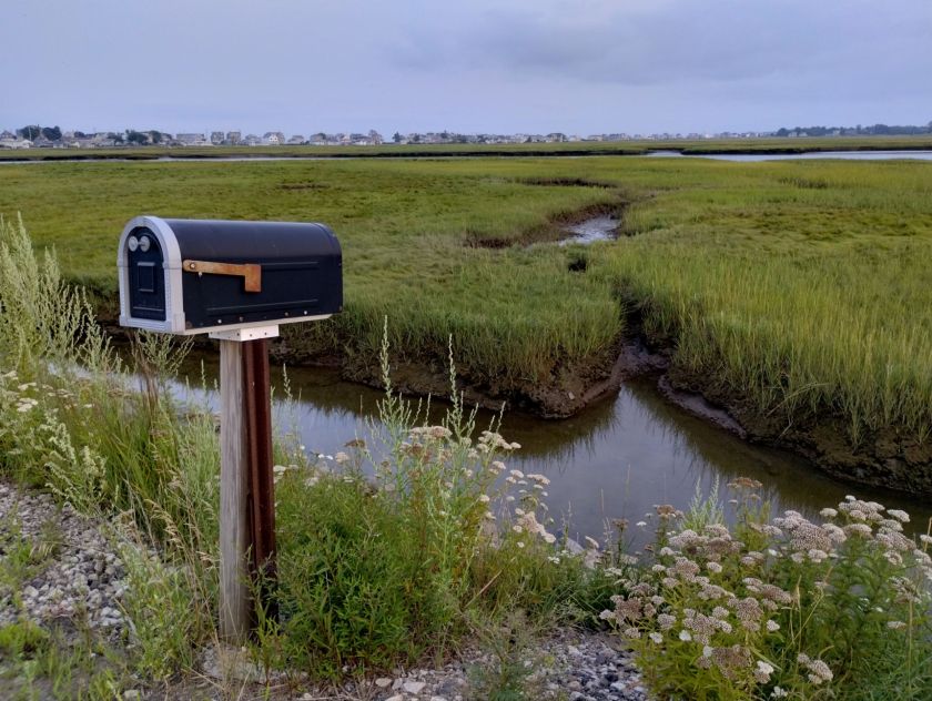 The featured picture of this piece is an uncommon image that showcases a famous coastal New England town. For a summer destination known famously for its clam chowder (or “chowdah” as affectionately articulated by the locals) along with the seaside inns and summer rentals, a mailbox is the last thing that comes to mind. Yet, when I was admiring the lush greenery of a sea salt marsh perfectly complemented by the backdrop of distant coastal structures, I found myself captivated by an aged black metal box on a weathered wooden post with a fastened, rusty metal support, ideally situated in the foreground of a typical drive-by sight in this northeastern state.